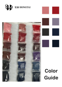 有色聚酯纖維採用聚酯原料搭配色母粒或原液著色技術製成,具有色澤穩定、色牢度高、耐洗滌、不易褪色等特點。顏色選項多元,可依照客戶需求調整深淺度、色號與功能性(如阻燃、低熔點、抗菌)。非常適合用於家紡、填充料、紡絲、無紡布與工業用途。